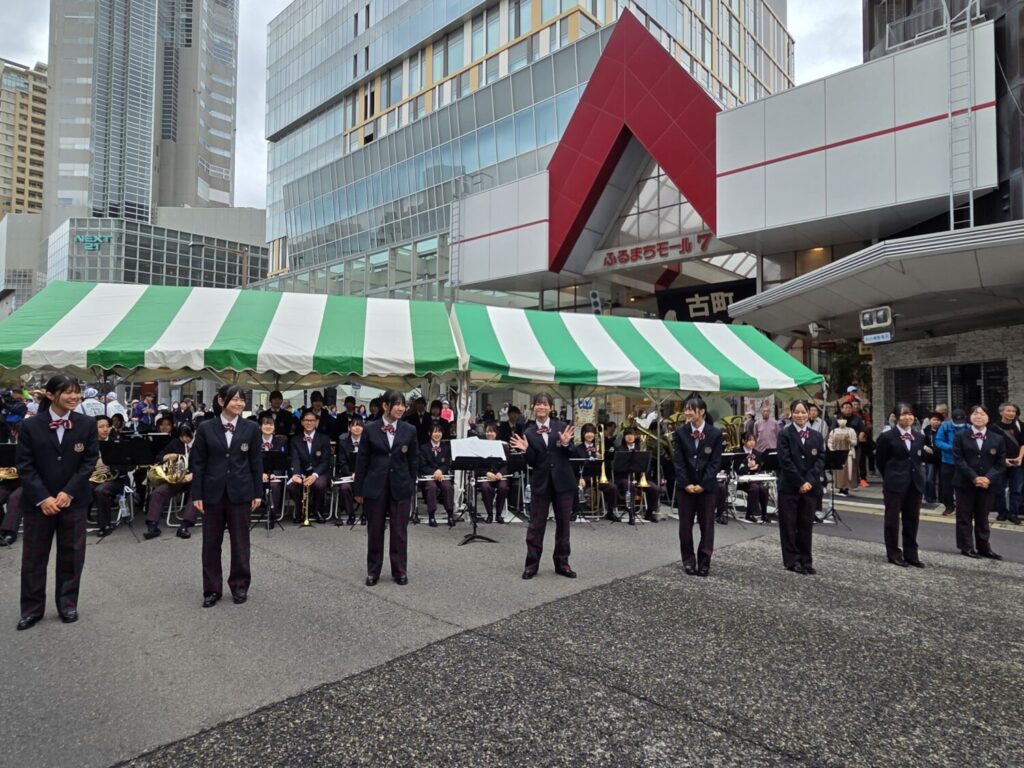 当日の午前中は生憎の小雨模様でしたが、ユニバーサルラン会場となっている古町ルフルで、12曲を演奏致しました。